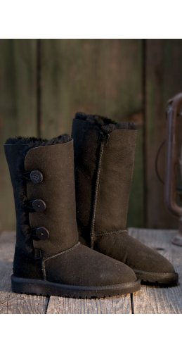 An update to the Classic Tall boot from UGG, with triple wooden buttons up the side for a fun look..../ Kid's UGG Bailey Button Triplet (Size: 6/Black) / Kids Shox